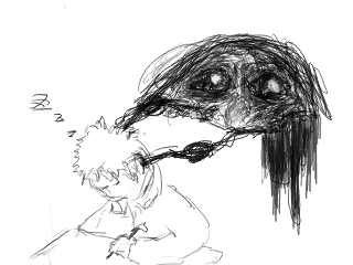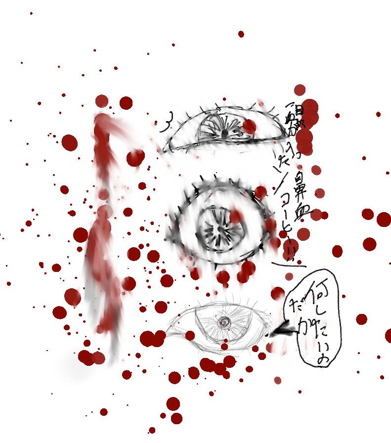 鼻血でコーヒーを薄めるという妙な情景が思い浮かんで描いただけですよ。