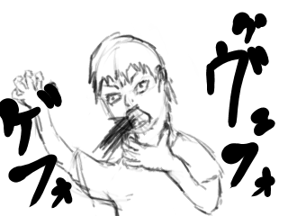 流石に挿絵の様に血までは吐いてませんが。